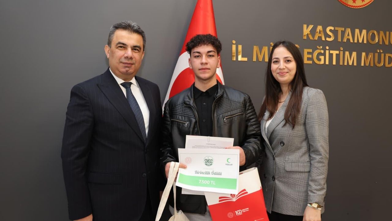 Kastamonu İl Milli Eğitim Müdürlüğünde gerçekleştirilen ödül töreninde öğrencimiz, ödülünü İl Milli Eğitim Müdürü Hasan Gümüş ve Yeşilay Kastamonu Yönetim Kurulu Üyesi Sayın Nagihan Şahin’in elinden aldı.
